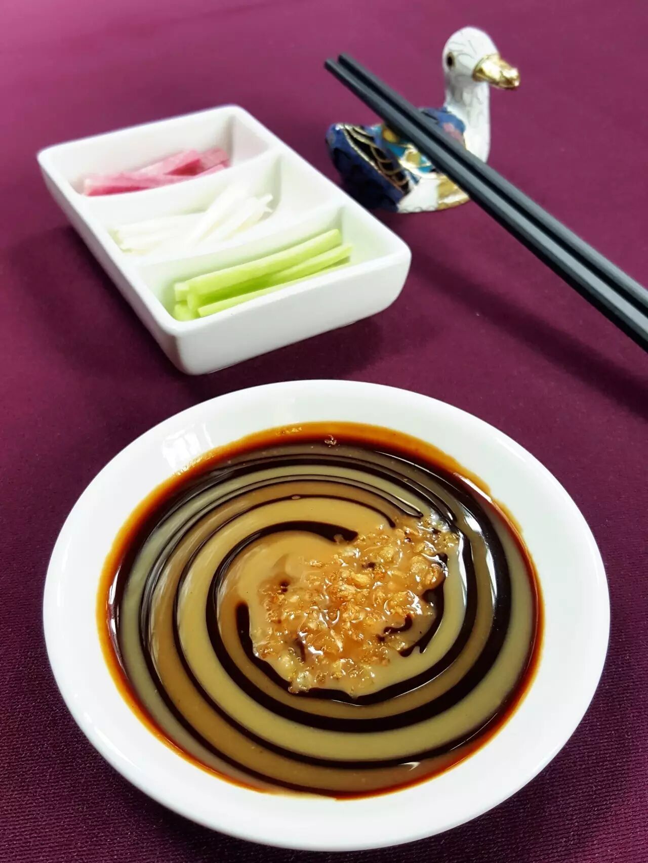 稍微缩小一点光圈,这张是F3.5,因为光圈小了进光量少了所以适当提高感光度保证画面亮度跟刚才基本一致,这样看起来前后就清晰很多,至少能大致看清碗里是什么了,最少要做到这个程度才可以。