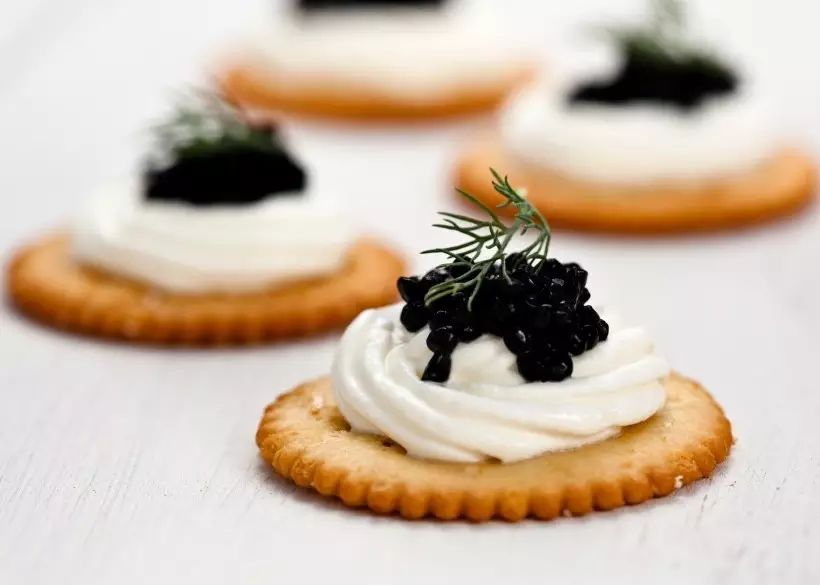 配匙吻鲟鱼子酱的烤饼干。 图: