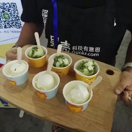心灵手巧的所长还把冰淇淋机搬到了现场,推出了独家特制的香菜味、芥末味、咖啡味和开心果味冰淇淋。面对香菜和芥末满脸拒绝的群众,在试吃之后纷纷拜倒在所长的围裙下!