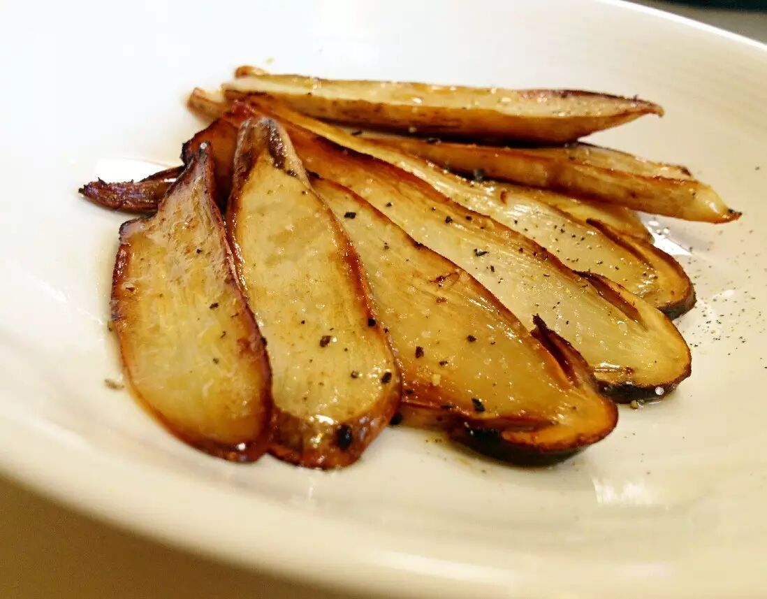 新鲜的鸡枞用南瓜叶子或者小牙刷洗干净,菌顶掰成块,菌腿切成均匀的斜片;