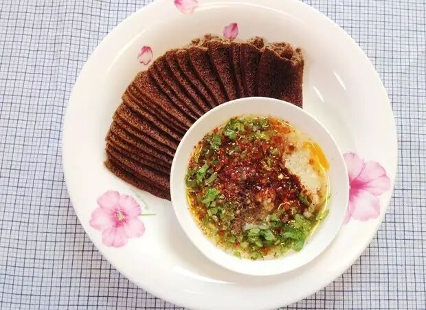 若是去了丽江,不管是大研古城还是束河古镇,每一座石桥附近几乎都能找到一个卖鸡豆凉粉的摊位,可以直接切条凉吃,也可以切成厚片油煎后拌上佐料热吃。每一个卖鸡豆凉粉的摊位都提供这两种吃法,配料主要有酱油、盐、醋、白糖、辣椒、芝麻、芫荽和焯熟切碎的韭菜、菠菜、绿豆芽等等,拌匀了看着非常有食欲。