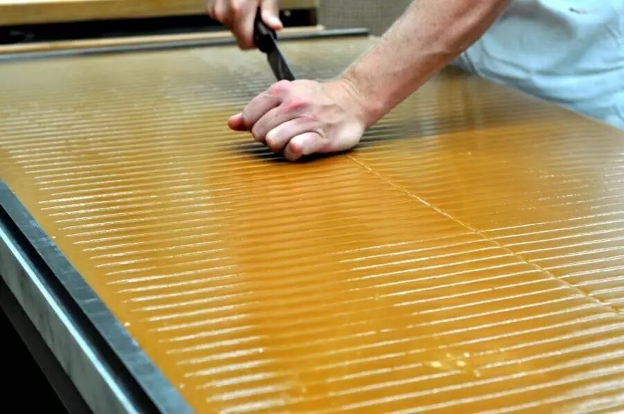 加热到融化变色的糖液可以用来包裹各色坚果做成果仁糖;拌上黄油,关火后再搅打进奶油则可以制成浓郁的焦糖酱。而大多数时候,caramel这个词除了代指制糖过程中将纯糖加热至变色的状态,亦可用来代指一种专门的块状糖果——在缓慢加热融化的糖中加入牛奶、黄油,甚至是炼乳和奶油,以及诸如香草、盐或巧克力等其他增添风味的原料,再冷却切成方块状的糖果。制作过程中,牛奶与糖的混合物加热不会超过120度,成品依然保留着柔软湿润的口感,一口咬下能拉出好长的丝儿来。