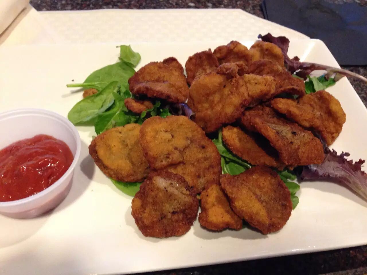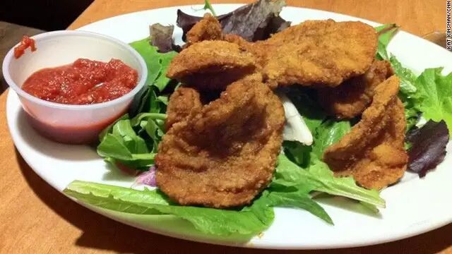 油炸牛蛋蛋在西部以外的地区并不是很受欢迎,但也可以在西部主题餐厅里见到,它们通常被视作开胃菜,炸成脆片,蘸着红彤彤的辣椒酱吃。虽说是油炸食品,可油炸牛蛋蛋仍然被视为是健康的,因为蛋蛋富含蛋白质、维生素和矿物质,多到高温油炸也不怕流失。至于吃上去嘛,不像牡蛎,也不像牛肉。油炸牛蛋蛋比牛肉更嫩,香味也与牛肉不同,更像是鹿肉。