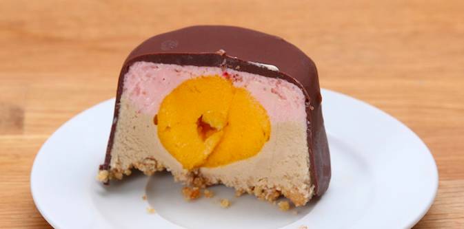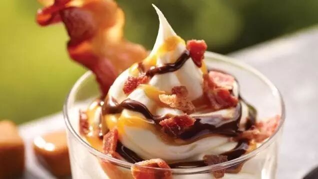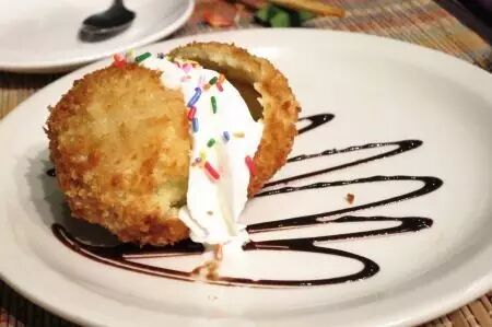 同样值得一提的是这个领域的另一个发明:油炸冰淇淋。这东西平时不太多见,但是在旅游景点、美食节之类的地方就会遍地开花。冰淇淋外边裹上一层薄吐司或者面粉,下油锅快速炸,外层的面食熟了,冰淇淋却还没有融化。一口咬下去不仅外焦里嫩,而且冰火两重天,充满了黑科技的味道。
