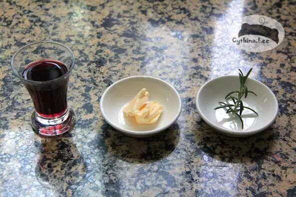 【原料】红酒、高汤(也可用水代替)、黄油、迷迭香、胡椒。