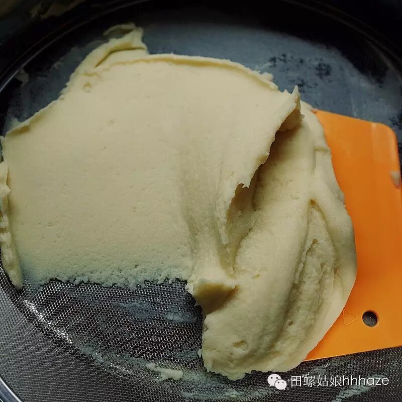 重点来了,过筛!过筛!过筛!将土豆泥用力压过筛网,过三次不许偷懒!