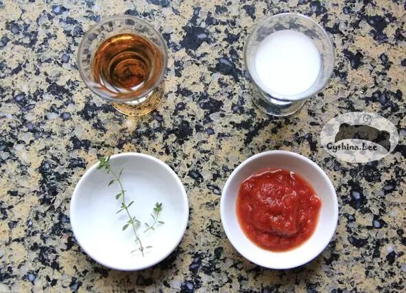 【做法】白兰地、番茄泥大约4:1混合,加入黑醋、百里香,煮开后小火熬煮1分钟,加入奶油(白兰地和奶油大约1:1.5)煮沸后加入盐、胡椒。