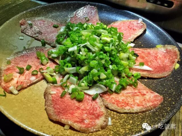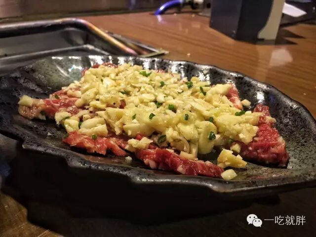 这间店一大特点,是大胆地使用小山一般的香葱和蒜末,虽然看起来似乎口很重,但烤过后的味道却很美妙,尤其是蒜末,加热后的蒜香味让牛肉充满了野性风味,而烤过后的大蒜臭味也会轻很多。我一些不太吃葱蒜的朋友对此也表示可以接受。