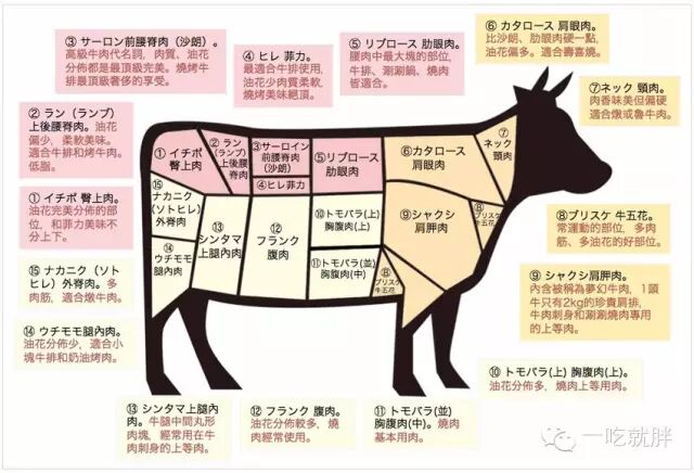 使用和牛,且肉的分割比较精细,足有几十个部位;