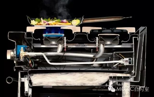 火炭能轻易把温度提升到700度以上,橘黄色的火焰高达1100度,炭块之间的温度可以达到1400度。火炉下方是进气口,打卡阀门,碳会烧得更旺。火焰和热空气加热食物。食物薄一些好,否则容易外焦里生。肉表面的化学分子燃烧,生成一大堆芳香族化合物,所以烧烤才会那么好吃!