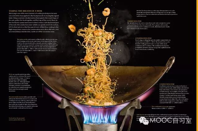 你知道么?从锅底到空中,温度都有不同。最底部的导热区有800度,稍不注意就会把面烤焦。炒面的秘诀,就是不断地翻炒,让面更多地停留在中间的凝结区,这里有均匀的100度的热气,让面变得好好吃~