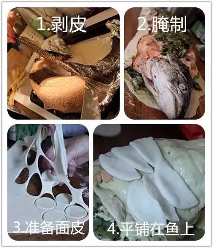 举例来讲,这道烤三文鱼的制作方法其实很复杂的,先要小心的细细剥去鱼皮,处理好鱼腹,然后用各种香料调味。最重要的外层面皮,先要整体裹上一大层(把所有美味包好),然后在制作小小的圆片,折叠整齐附在上面......学会了不。