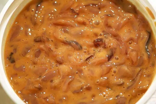 非常地道的日本菜,一般作为下酒菜,颜色介于红色和褐色之间。原材料是各种各样的海洋生物,日本不同地区采用的原材料还不一样。日本人喝酒时吃一点,口感粘腻,酒香、米香、盐辛香(?),据说是“人间珍味”般的享受……