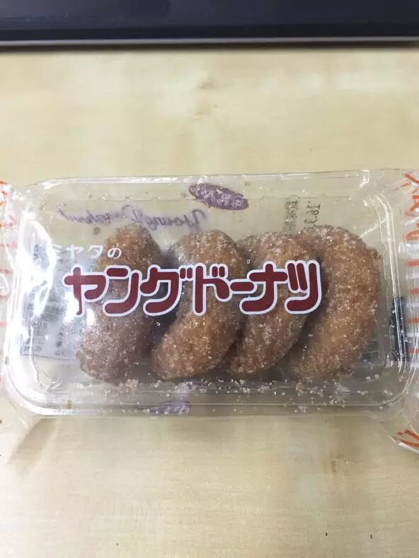 裹满砂糖的迷你甜甜圈,4个一包(另外还买到一种5个一包的,味道差不太多)。四个字足以形容:小多纳圈,基本上是一样的味道和口感,比面包店的甜甜圈口感更厚实。挺好吃的,我小时候就很喜欢吃小多纳圈,不过现在吃起来就觉得太甜了……粗点心还是比较迎合小朋友的口味吧。