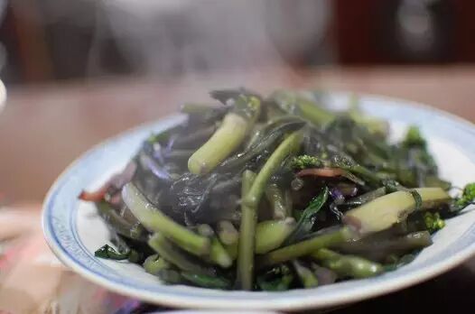 在武汉,想不出还有什么蔬菜可以替代红菜薹。红菜薹,文雅点叫紫菘,看名字就知,与大白菜(菘)是近亲。古来有食,历时千年,属于较早被驯化的菜蔬。春节前后,任何一个武汉主妇心里都会有张龟山样的曲线,显示着红菜薹价格的走势,往往是以除夕为最高峰。而红菜薹每年一度的谢市,往往伴随着春节的结束。一般深秋栽种,入冬抽薹,长一茬,割一茬,直至正月十五,红菜薹如梦方醒,不甘继续被果腹,于是嫩薹不再。