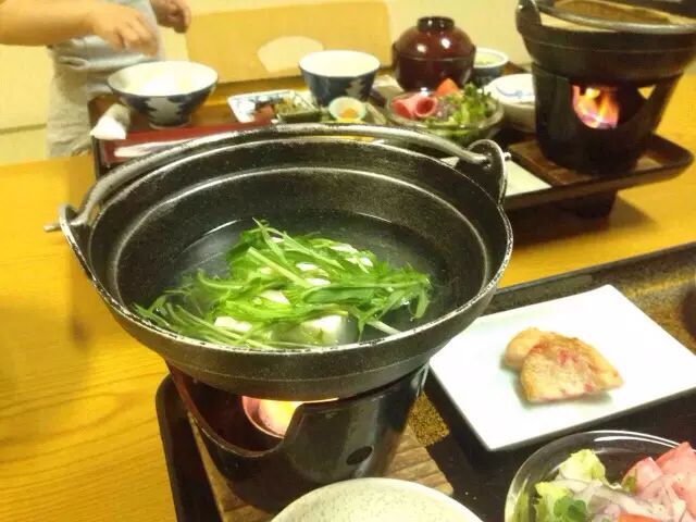 水菜生熟皆宜,从沙拉、乌冬面这样的庶民食物到怀石料理都能见到它的身影。前些天在京都,和式早餐中有龙安寺名产汤豆腐,上面放着的就是水菜。我起初以为是菊苣之类,一吃之下却没有那种菊科的苦味,后来查了一下才认识这种特殊的白菜。总之,吃起来清香脆嫩而味淡,倒是符合日本人的事儿逼属性。