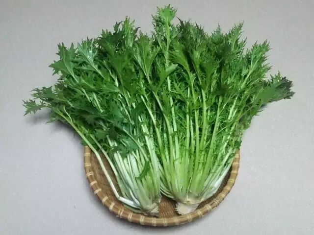日本人的东西之争很有意思,但凡关东有个什么好东西,关西一定要弄一个与之抗衡。白菜也这样,而且关西的比关东的来头更大,这就是水菜 (ミズナ)Brassica rapa subsp. nipposinica,你看亚种加词把日本和中国都含进去了。俗名也很了不得,作为京都名土特产“京野菜”的代表,キョウナ(京菜)就是它。另外这种蔬菜长得跟别的白菜都很不一样,叶片是羽状细裂的,更像雪里蕻,因而也有センスジナ(千筋菜)、センボンナ(千本菜)、センスジキョウナ(千筋京菜)、イトナ(丝菜)等别称。