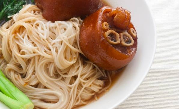 在台湾,猪脚面线像是下斗淘沙时驱僵尸用的黑驴蹄子,大病出院、度劫出狱都要来一份:台煤报道因“美丽岛事件”被捕的黄信介出狱时也用了黄在家里吃猪脚面线的图;2007年马英九特别费案二审获判无罪,有支持者请马去吃猪脚面线;各种推荐台湾美食的资讯也一定会告知游客,台湾的猪脚面线是“驱除厄运”的庶民料理,务必尝一下。