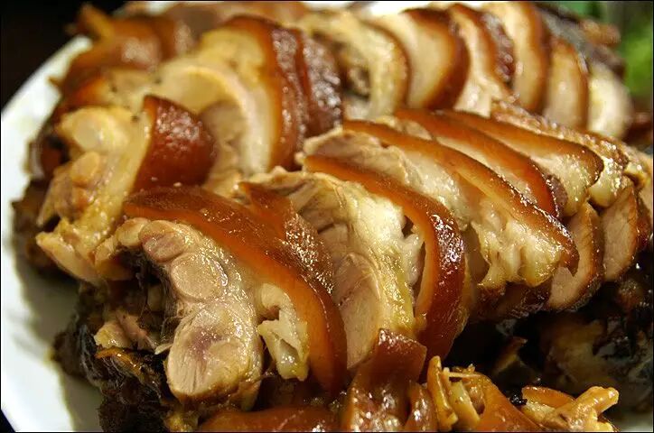 古人用陈皮、红枣、葱、辣椒、酒、冰糖、酱油佐制猪脚,《随园食单》有用虾米煎汤带水提味的创意,鲜咸兼宜,就是做起来颇费火候,自家料理很难自如地在韧性与熟烂感间游走。台湾有在卤猪脚时加苹果汁的,嗜甜者不妨一试。