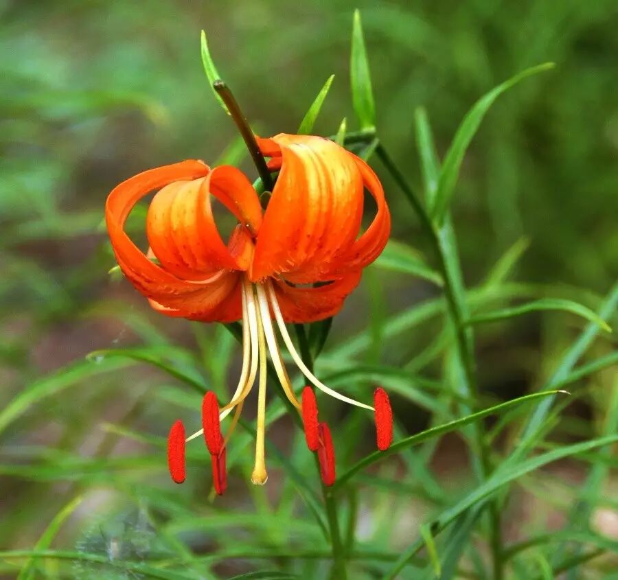 我们平日里吃的炒百合的那个”鲜百合”,并不是百合花,而是百合科百合属类植物的地下鳞茎。这类植物约有300多种,其中部分品种的鳞茎可食(比方有卷丹百合、兰州百合)。鲜百合很好养活的,把它整球种在土里,不久长出花儿来,几年后还能繁殖不少小球,就可以挖来吃啦。一般有可食用鳞茎的百合种出来的花是这样的——