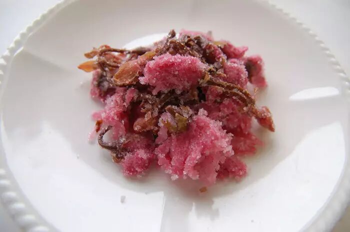 八重樱100g、食盐50g、梅醋(米醋)35ml