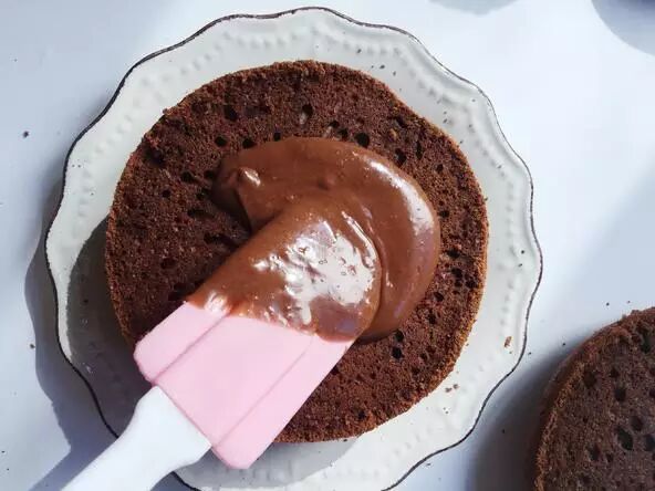 【TIPS】如果不觉得能多益太甜可以稍微加热后直接抹在蛋糕上。我个人认为即使加了30g淡奶油,也还是偏甜,不过与蛋糕胚搭配后会中和甜腻