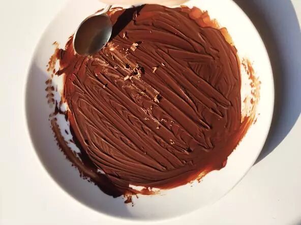 1.将15g黑巧放入9寸盘子中,微波炉加热30-60s,熔化后用勺子摊匀,入冰箱冷藏至凝固