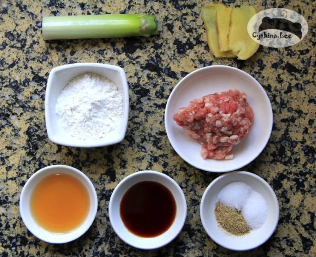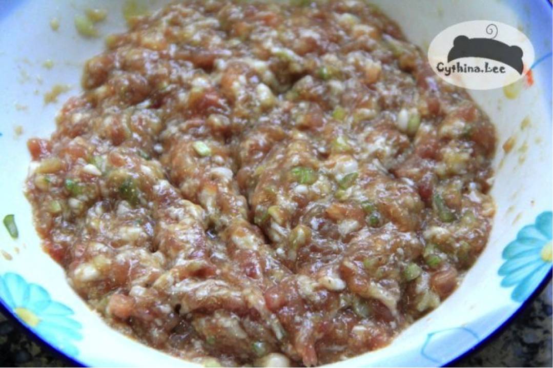葱、姜切末浸在清水中做成葱姜水,猪绞肉拌入调味料、分次加入葱姜水搅打至起胶,葱姜水一定不能少,汤团美味的汤汁全都靠它了