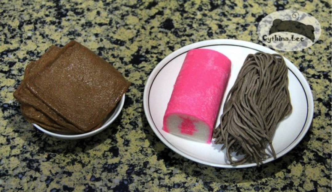 材料很简单,荞麦面、油豆腐、鱼板,汤头用柴鱼高汤,油豆腐用了调好味的甜豆皮方便很多