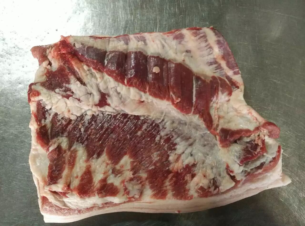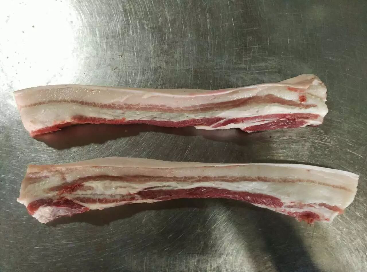 无论何种地方的中式红烧肉,在选料上一定都会选用成年猪的五花肋条肉,实际上就是猪的肋部外部及腹部肌肉,这部分含有较多脂肪,因此切开后可以看到脂肪和肌肉的相间排列,最外层为皮肤,三层肌肉间夹杂两层脂肪,一共5层。其中三层肌肉分别为猪的腹横肌,腹内斜肌和腹外斜肌。