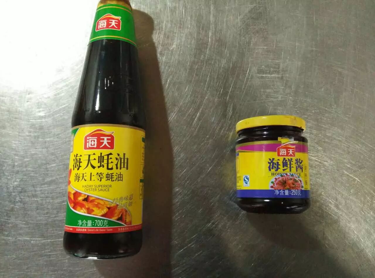 4、添加酱料,常见的有蚝油、海鲜酱、郫县豆瓣酱。前两者经常会混合使用。蚝油的目的在于提鲜;海鲜酱可以增加鲜甜的味道,而且具有很好的酱红色的着色性;豆瓣酱是为了增色增辣。