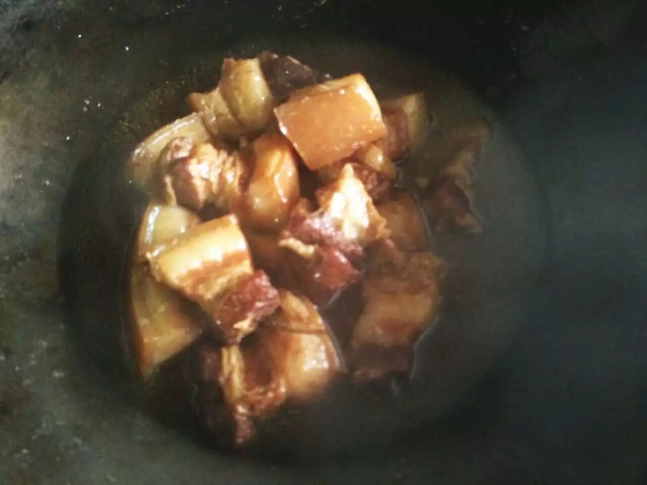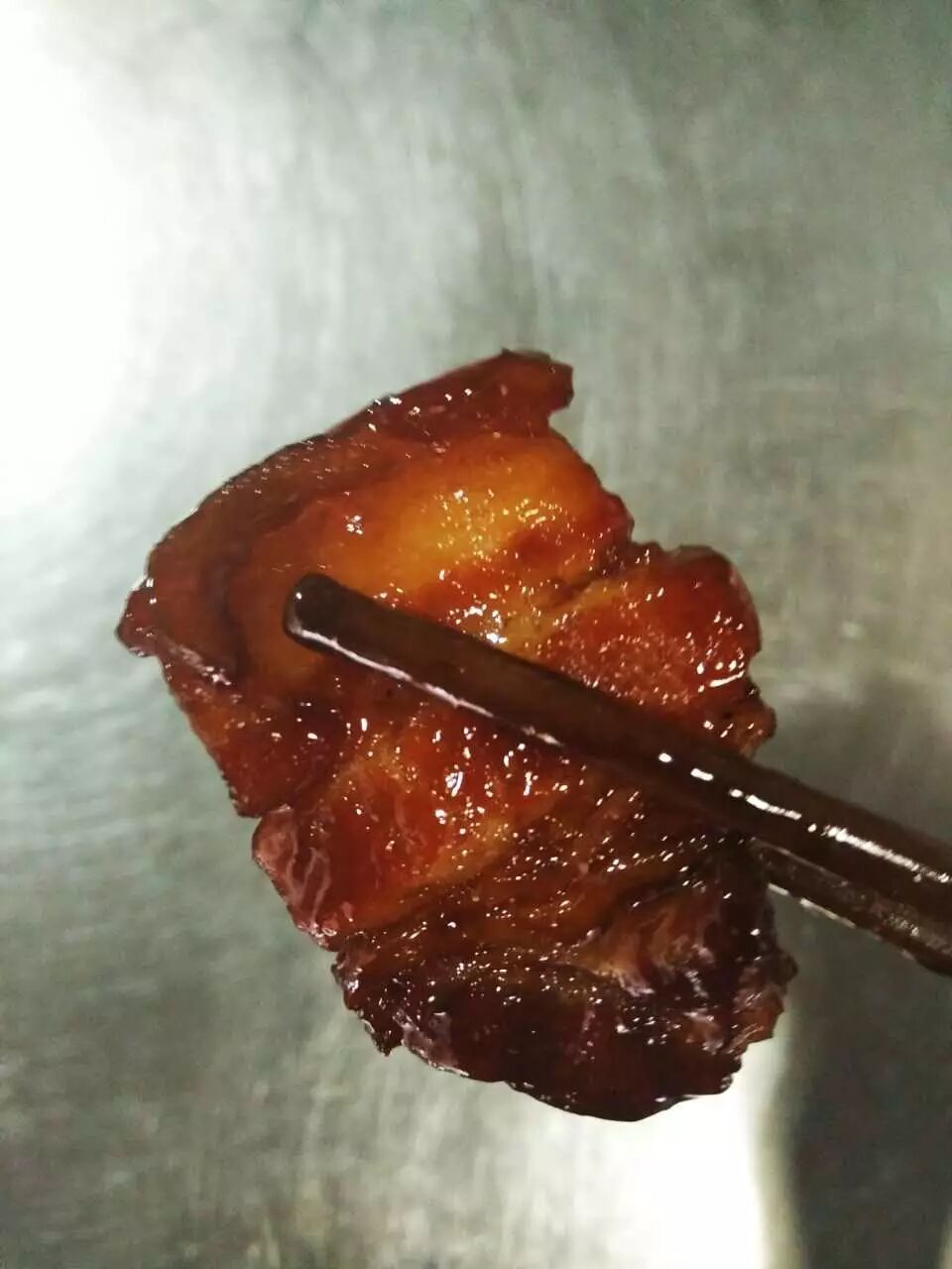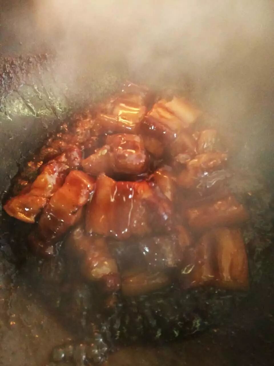 3、块型较小的红烧肉,可以在最后连汤汁入锅,利用美拉德原理,加入适量白糖,大火收汁,从而使菜肴汤汁浓稠,色泽红亮,香气浓郁。但是要注意及时出锅,否则极易焦化。上桌时需要有保温的措施,否则一旦降温,色泽与口感都会大打折扣。