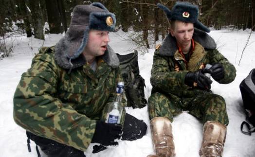 穿着军装痛饮伏特加的俄国人。图:odt.co.nz
