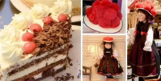 这里长久以来就是德意志的富庶之地,倚靠莱茵河谷又比邻法国,饮食文化融入了不少法式菜肴的元素,加之黑森林地区物产极其丰富,使得当地人似乎比其它地方的德国人显得更会吃。除了啼啼湖的烟熏鳟鱼、圣马丁节的烧鹅、黑森林火腿、蜂蜜烤鹿里脊,最著名的要算黑森林樱桃蛋糕(Schwarzwälder Kirschtorte)。