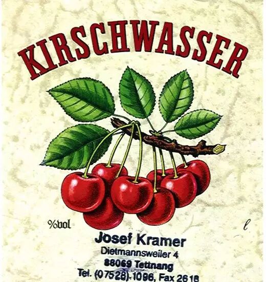 黑森林蛋糕的灵魂配料是樱桃酒(Kirschwasser),一种产自黑森林地区由高甜度樱桃酿造并经过双重蒸馏浓缩而成的白兰地,酒精含量约五十度,通常十公斤左右的樱桃才能浓缩出一瓶750ml的烈酒,不仅带有优雅的樱桃香气,还会渗透出果核里的杏仁香味。