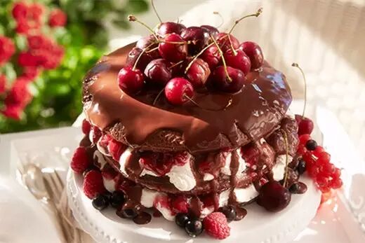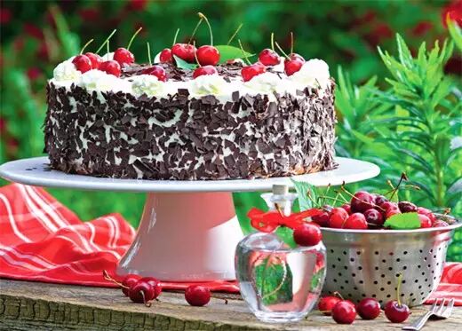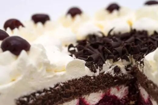 松软的巧克力蛋糕胚上涂满雪白蓬松的甜奶油,再撒上口感浓郁的黑巧克力碎,这便是经典的黑森林樱桃蛋糕,“黑森林”永恒的主角并不是很多人以为的巧克力,而是樱桃,不仅仅是装饰点缀的樱桃,蛋糕夹层里也必须塞入足量的樱桃和樱桃酱。