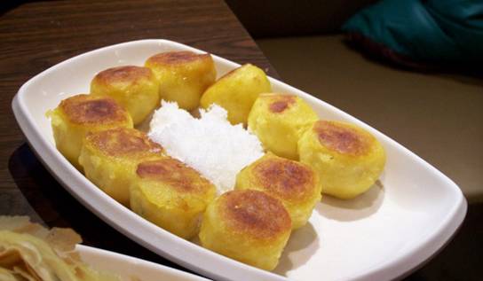 煎着吃、烤着吃、蒸着吃,蘸白糖、蘸蜂蜜、蘸猪板油。