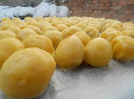 严寒的冬天,东北人喜欢吃一种面食——粘 (nián) 豆包。