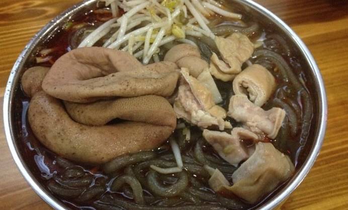 细香葱平菇料理装袋冷藏,红烧肥肠冷藏,上海青黄豆芽香芹洗净冷藏。晨起少油爆香细香葱,炒平菇至软加黄豆芽滚汤十分钟,上海青煮熟,放河粉。起锅浇红烧肥肠,撒香芹珠。肥肠处理前需要剥干净脂肪,入葱姜料酒水中开锅盖煮半小时去净臊臭气,再另行起锅红烧。