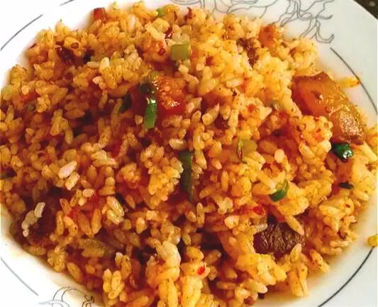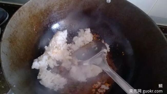 倒入米饭翻炒均匀,根据臊子的咸淡及个人口味适当码盐;