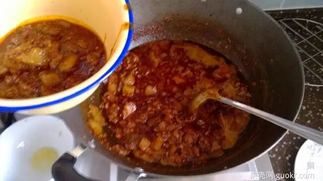适量臊子,油多挖些,入锅化开;