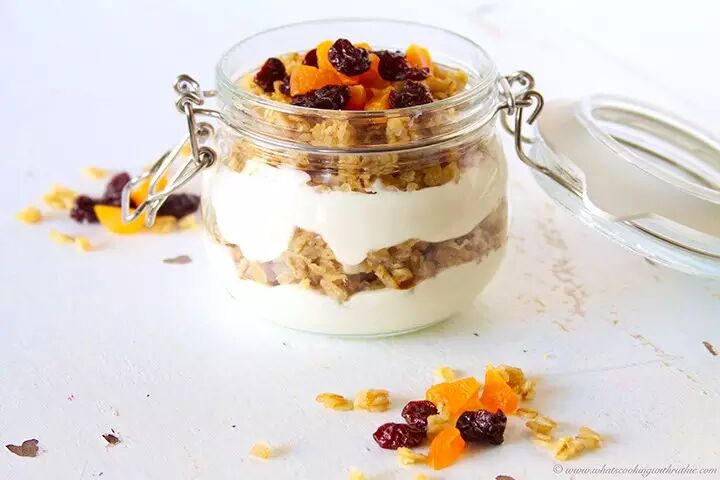 600ml凝固形酸奶,一大把混合蜜饯(樱桃、杏、葡萄干等)