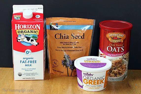 牛奶,奇亚籽,浓稠的酸奶,麦片