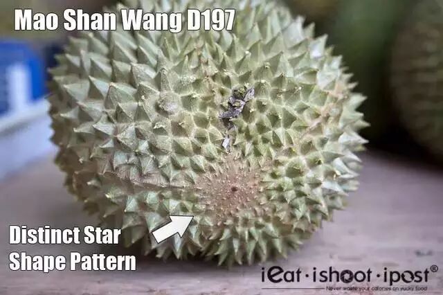 猫山王,D197,得名自其最早先产地GuaMusang。这个地名的马来语直译就是麝猫的洞穴,然而其实当地并没有麝猫,只是传说中有一只幽灵猫住在洞里。看数字也知道,猫山王是马来西亚榴莲家族中比较新的小伙伴,1993年才注册,可能因为最初的野生猫山王树被人发现并栽培得较晚。然而现在猫山王的名头已经无需多说,是新马最受欢迎也最贵的榴莲,没有之一。猫山王榴莲的刺粗而扁,底部有标志性的五星(要小心D123也有,但还是有不同)。肉质细腻,甘甜,核小肉厚无纤维,香气浓郁,入口味道丰厚悠长。老树(树龄在20年以上)产的榴莲在甜中带苦,不会腻人,并且回味特别久,深受喜爱。