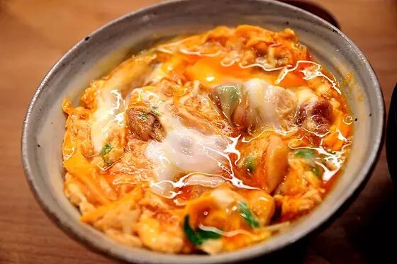 在日式盖饭的悠久的历史里,这款“鸡亲子丼”堪称始祖,已有百余年的历史。日本一度流行一种将鸡蛋液淋在鸡肉上烹制的锅料理——“军鸡锅”,当时鸡肉和鸡蛋的价格还十分昂贵,食客们常常因为舍弃不了吃剩下的汤汁,就索性将米饭一起拌入汤汁中食用,久而久之慢慢演化出了鸡肉蛋汁盖饭,也就是 “亲子丼”,并渐渐成为了家喻户晓的平民美食。
