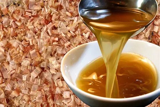 经典的日式盖饭离不开的灵魂味道——出汁(だし),很多店家会亲自熬煮出汁。出汁是由鲣鱼干(木鱼花)、昆布干、小鱼虾干一起长时间熬煮得到的一种的高汤,有着琥珀色光泽,口味清淡,味道既能提鲜又不至于喧宾夺主,实在适合亲子饭温婉的气质。