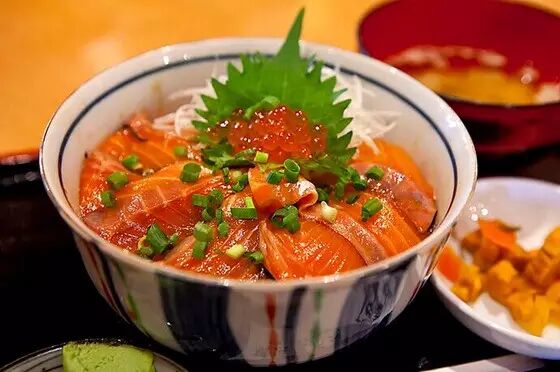 亲子丼(Oya Ko Donburi),也就是我们熟悉的日式【滑蛋鸡肉盖饭】。“丼(dong)どん”是日本料理对盖饭的统称,“亲子丼”这个名称则是源于丼物里同时包含了【鸡肉】和【鸡蛋】,有将“父母”和“孩子”一并吃下去的寓意。于是还有着另一个版本的“亲子丼”,即海鲜亲子丼(又叫鲑亲子丼),也就是同时包含了鲑鱼肉和鲑鱼籽的海鲜盖饭。