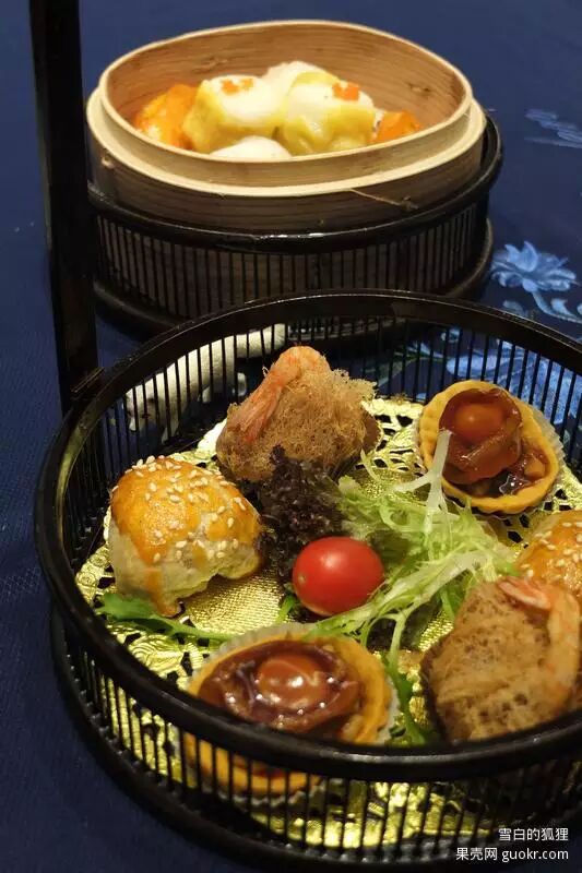 紧接着在同一个大厦里上楼去了美心阁餐厅,本来是想吃这里的超大拿破仑的,但真的超大,上面那一顿茶餐厅吃得我撑死,就点了点心套餐,一共六款:虾饺、带子烧麦、东星鱼饺、鲍鱼挞、叉烧酥、凤尾虾鱼芋角,每款两件。做得很精致,味道虽然不惊艳但也都不错,鲍鱼挞上的小小鲍挺有味儿。这里不差钱的人来喝个下午茶还是不错的。也收10%服务费,不过比起和苑的服务来基本上就相当于没服务了。★★★