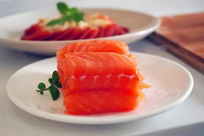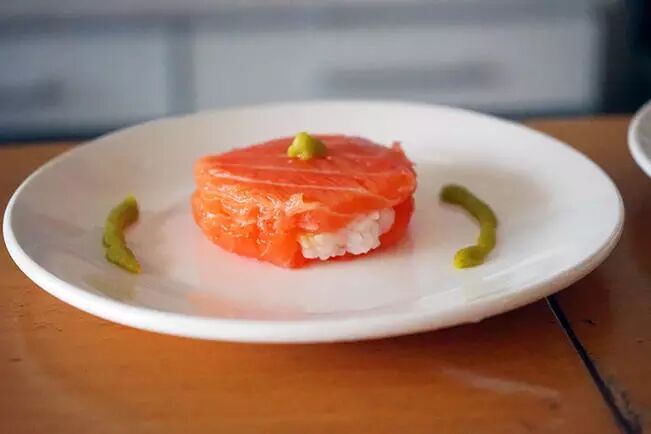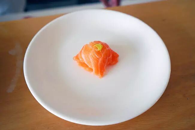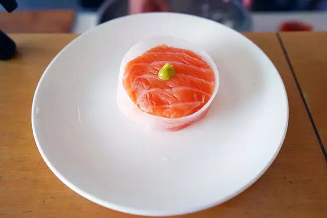 冰皮的糯糯的口感太抢戏了,芥末揉进饼皮里的量掌握不好会很虐,三文鱼感觉都浪费掉了呢_(:з」∠)_
