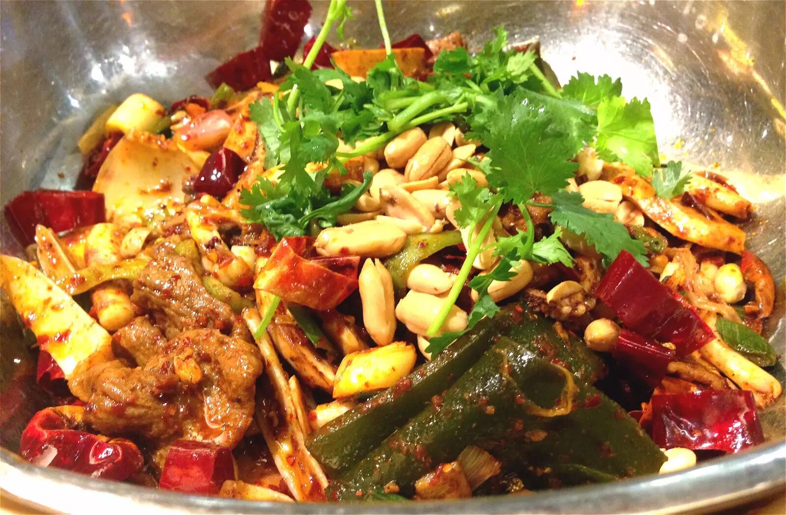 如果说 麻辣是巴蜀最具风情的风味,那么香锅应该是麻辣风味最具特色的实现形式。据说麻辣香锅起源于土家做法——把麻辣为主的多种调料用油炒香,再加入各种荤的素的食材,炒成一锅。麻、辣、鲜、香,爱好不同食材的食客们都能各得其所。在火锅风靡了全国之后,麻辣香锅大有后浪推前浪的气势。火锅与香锅,堪称称巴蜀美食的绝代双骄。